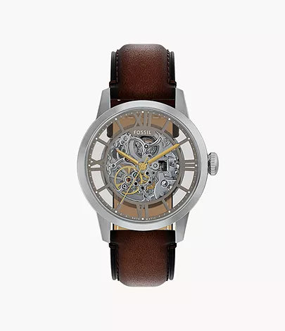 A black stainless steel case pairs seamlessly with a rich brown leather strap for a refined yet approachable look. The black sunray dial under an amber crystal, adds subtle depth and texture, complemented by practical sub-dials for day, date, and 24-hour functionality. The round case design balances modern versatility with thoughtful craftsmanship, creating a reliable timepiece designed for daily wear.